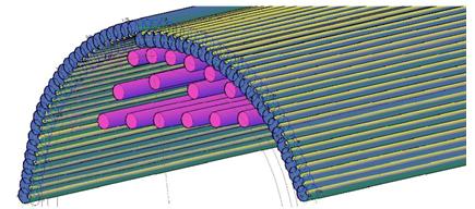針對本工程下穿(深圳)地鐵3號線,暗挖隧道沉降控制高要求和現場地質、水文、環境的實際情況,拱部采用“雙排水平旋噴帷幕+(帷幕間)159mm超前大管棚”綜合施工工法進行超前與支護,掌子面上臺階施做“水平旋噴錨固樁”進行地質改良、錨固。本支護里程為DK110+500460,一次性支護長度40米,水平旋噴+管棚綜合支護;水平旋噴帷幕施工采用無線導向測控技術,測量精度為0.1%,施工精度為0.5%;內排旋噴樁在隧道開挖線外300mm孔,外環旋噴樁在開挖線外800mm布孔,一次施工長度40米,上仰1%角度預留施工誤差;設計水平旋噴樁樁徑600mm,環向孔間距400mm,環間距500mm,孔間搭接200mm,環間搭接100mm;掌子面施工水平旋噴試驗樁和錨固樁,施工長度和樁徑與拱部帷幕旋噴樁相同;暗挖隧道拱部水平旋噴樁咬合帷幕體中間施工超前大管棚,共同形成拱部超前支護;管棚在開挖線外550mm布孔,鋼管管徑 159mm,厚度6mm,采用內套管絲扣連接,連接扣長不小于70mm,一次施工長度為40米;超前大管棚采用有線導向測控,測量精度0.1%,施工精度為0.3